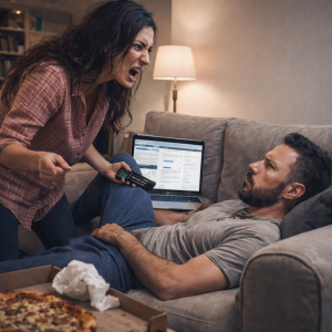 — Ты три года ищешь «достойную работу» лежа на диване, пока я пашу на двух ставках! С меня хватит!