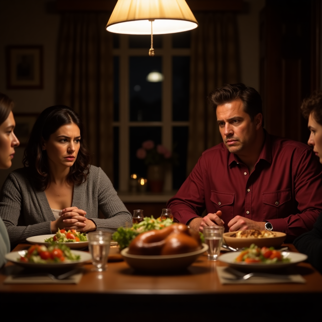 В гостиной, за столом, ломившимся от еды, сидели отец, Максим и его жена Ирина. Ирина с интересом изучала что-то в телефоне, лишь мельком подняв на меня глаза. Максим кивнул с видом хозяина положения. Отец хмуро смотрел на тарелку.