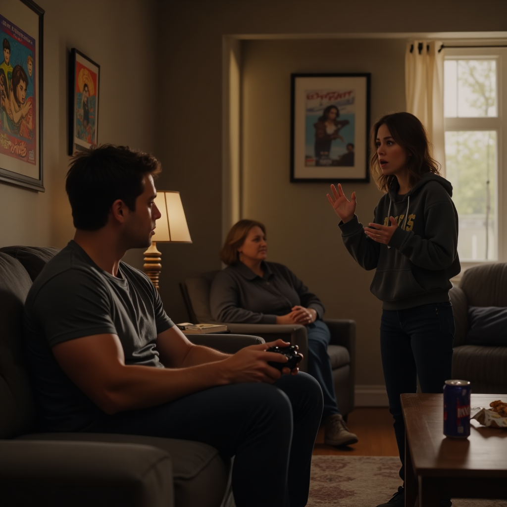 К вечеру гостиная напоминала место боевых действий. Вещи Егора валялись везде — джинсы на кресле, толстовки на спинке дивана, кроссовки посреди комнаты. На журнальном столике стояли грязные тарелки, пустые банки из-под пива, пачка чипсов.