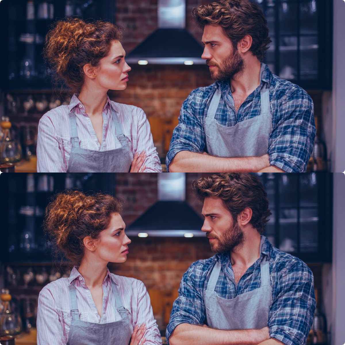 Виталик замер, его улыбка медленно сползла с лица. Он переводил растерянный взгляд с сестры на Стаса.