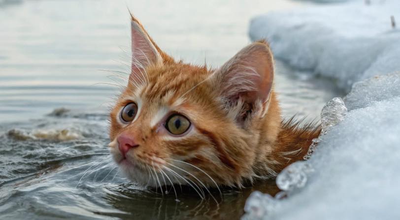 Люба прищурилась и разглядела, что это кошачья голова едва виднелась над водой. Лапки цеплялись за кромку тонкого льда, образовавшегося за ночь вдоль берега. Тут же соскальзывали, снова цеплялись.