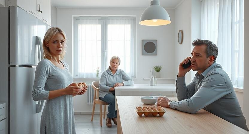 Анна, стоявшая у холодильника, замерла. В руке у неё была упаковка с яйцами, и она словно чувствовала, что каждое слово сейчас решит, треснут они или нет.