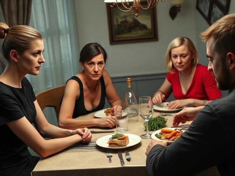 Тишина за столом стала вязкой. Ксения чувствовала: сейчас опять начнётся «про детей», «про жильё», «про обязанности жены». И точно — свекровь вздохнула, отложила вилку: