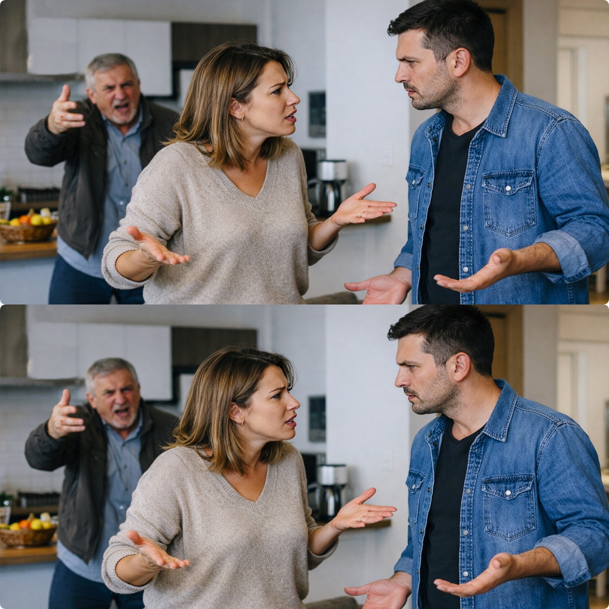 Дмитрий стоял на пороге с покрасневшим лицом и сжатыми кулаками. Свекор обернулся к сыну.