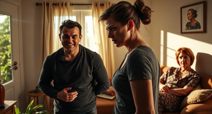 Максим стоял посреди комнаты, растерянно сжимая в руках телефон. Экран давно погас, но он всё ещё смотрел на него, будто там мог появиться правильный ответ. За его спиной, на аккуратно застеленном диване, сидела Алла Викторовна — выпрямленная, собранная, с лицом человека, который заранее уверен в своей правоте. Чуть в стороне, у окна, переминался мужчина в сером пальто, слишком ухоженный для этой квартиры с облупленным подоконником и старыми рамами.
