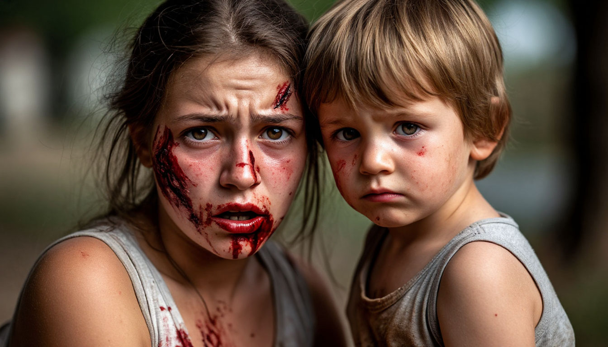 Лицо Оли… Лицо было самым ужасным. Правый глаз полностью заплыл, превратившись в багрово-синюю щель, левая скула была располосована вздувшимся кровоподтеком, похожим на гнилой плод, а нижняя губа была разбита и опухла. Она метнулась к машине, дико озираясь по сторонам.