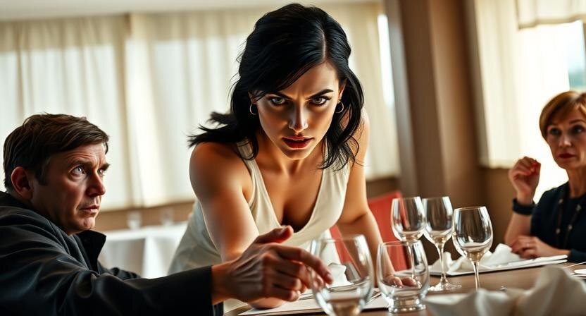 Наталья села сбоку. Заказала воду. Смотрела, как разговоры текут мимо неё, как Алексей смеётся, как мать бросает реплики — острые, точные, рассчитанные. Наталья пыталась вставить слово, но её будто не слышали.