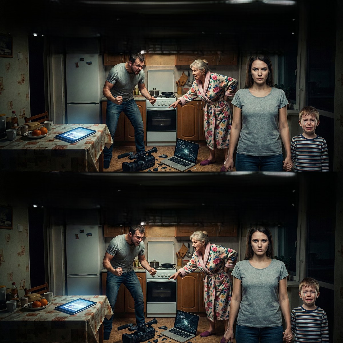 Дима размахнулся и со всей силы швырнул камеру об кафельный пол кухни. Хруст пластика и звон разбитого стекла линзы взорвали тишину. Костя вскрикнул и закрыл лицо руками.