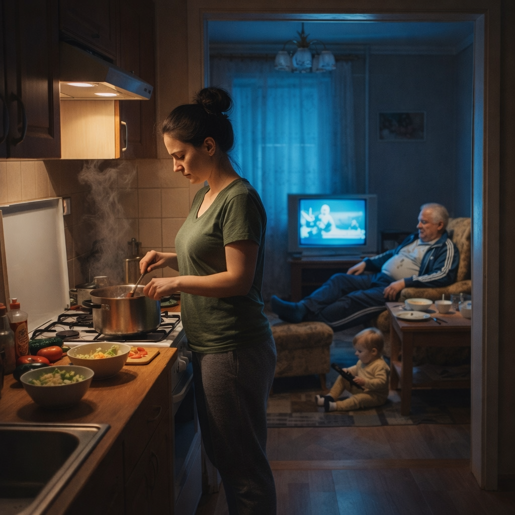 Ира смотрела на гору овощей на столе. Суббота — её единственный выходной от отчетов в банке, единственный день, когда она могла бы просто полежать в тишине. Но вместо этого она чистила, резала, тушила и жарила. Олег, её муж, обычно самоустранялся под предлогом «помощи отцу в гараже», хотя гараж был идеально прибран, и они просто пили там пиво, прячась от домашнего шума.