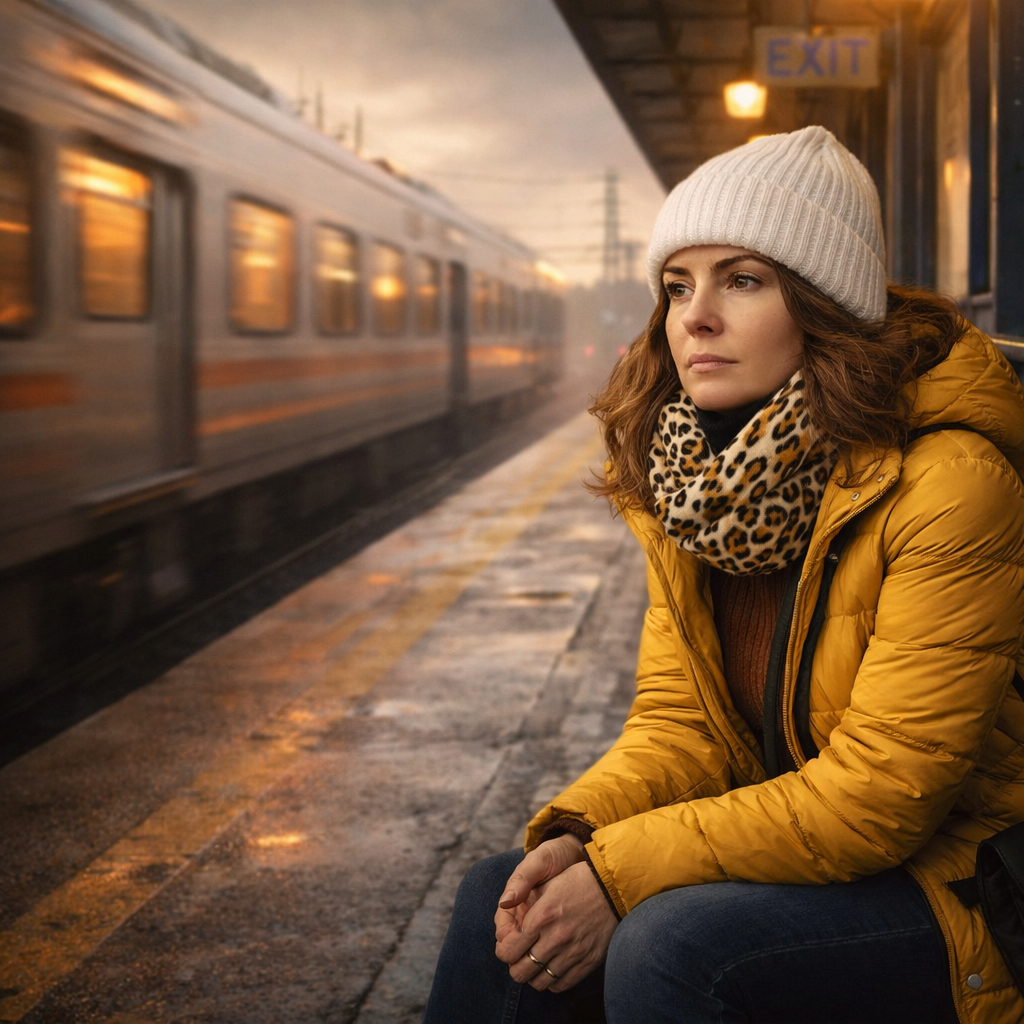 «Прямо как в дурном сне», – подумала она, машинально поправляя выбившуюся прядь волос. На платформе было пусто и неуютно, только желтые фонари отражались в лужах, создавая причудливые световые дорожки.