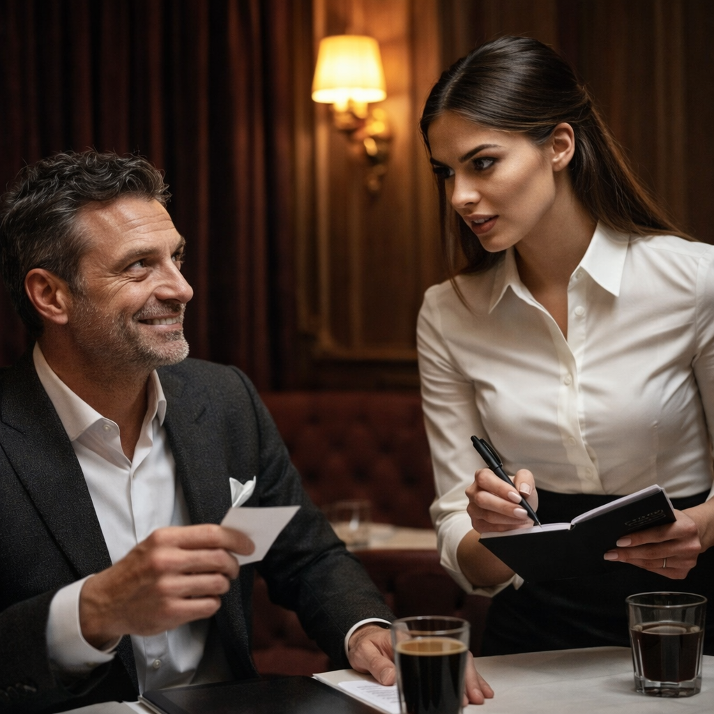 Девушка не изменилась в лице. Ни обиды, ни злости. Только легкое сожаление мелькнуло в глазах. Она молча положила перед ним счет в кожаной папке и развернулась, чтобы уйти.