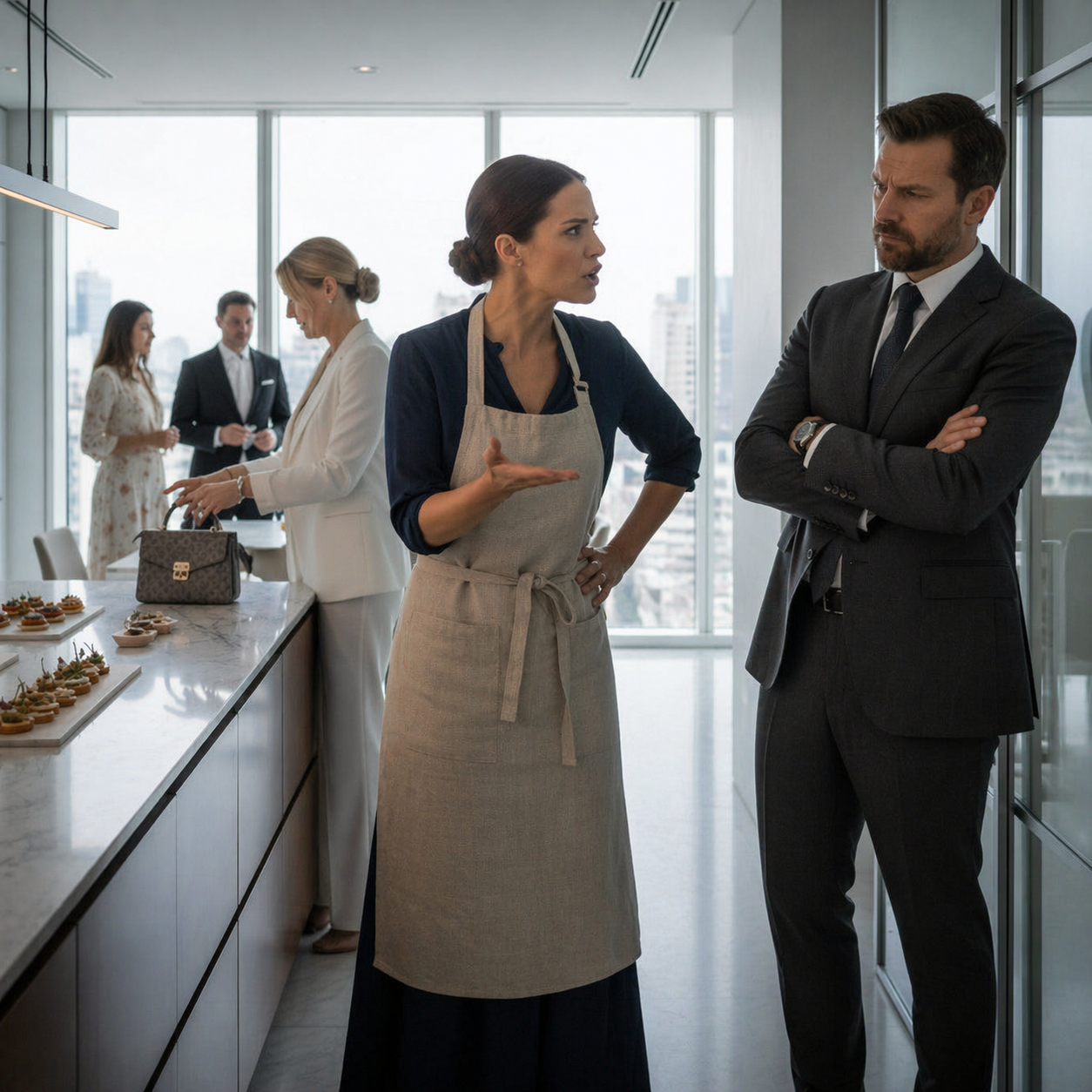 Вера осталась одна. Она смотрела на пятно от кофе, на сумку, которая так и стояла на столе, на тарталетки, которые уже начали терять свежий вид. Потом перевела взгляд на фартук. Взяла его обеими руками за края, словно взвешивая. На секунду ей показалось, что она видит себя со стороны — женщина в фартуке на собственной кухне, которую гостья попросила сварить кофе, а муж выставил за дверь, как прислугу.