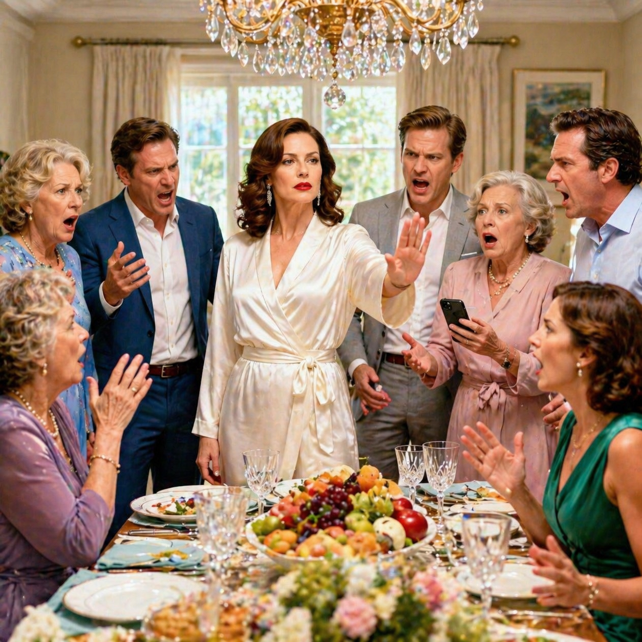 Теперь тишина стала физически ощутимой, вязкой, как болото. Олег смотрел на жену, и его лицо менялось, как сломанный телевизор — мелькали растерянность, злость, паника. Он открывал и закрывал рот, силясь что-то сказать, но слова застревали в горле. Его друзья опустили глаза, внезапно заинтересовавшись узором на скатерти. Галина Петровна схватилась за сердце и начала судорожно хватать ртом воздух, но никто не бросился ей помогать — все были слишком ошарашены.